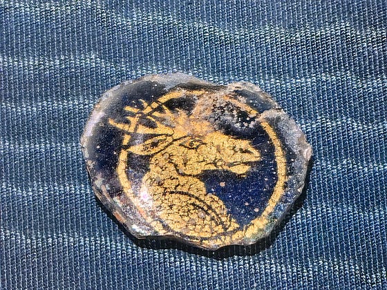 Gold sandwich glass, 4th century CE, Roman vessel bottom, Medici Collection, Bargello, Florence.