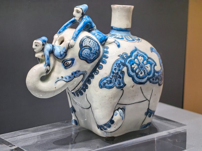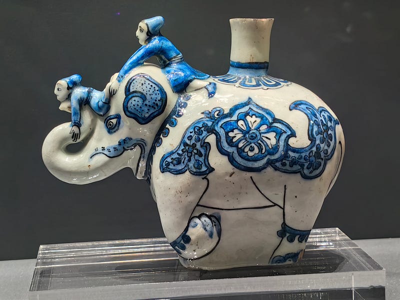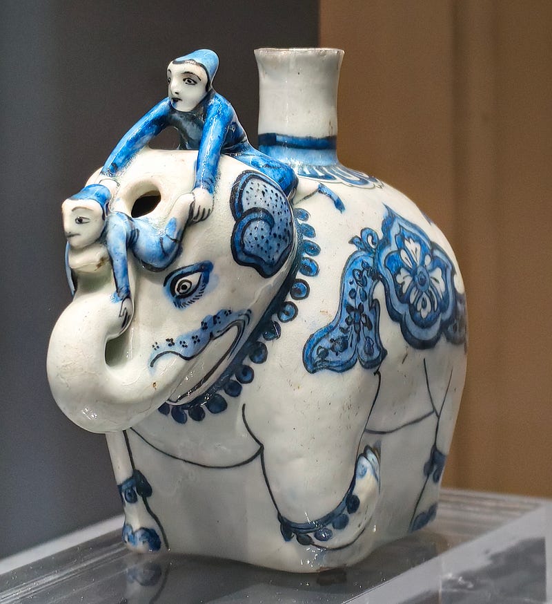 White ceramic with blue and black paint, 17th century CE, Persia. Carrand Collection. Bargello, Florence.