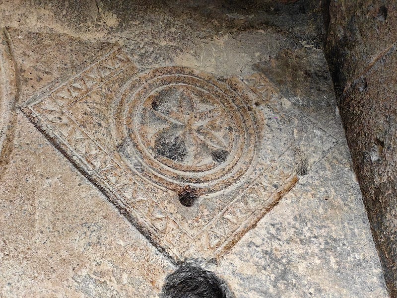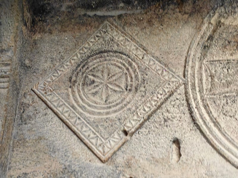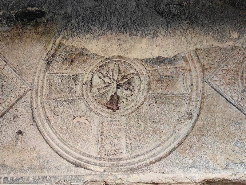 Gorgeous stone rock carvings on Emperor Justinian the Great's facade of the rupestrial Church of St. John Prodromos