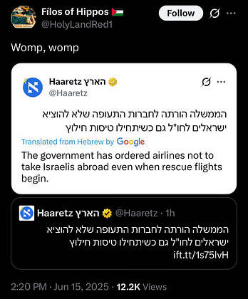After declaring opposition to war illegal, isranazi government tells airlines not to take Israelis out of israel.