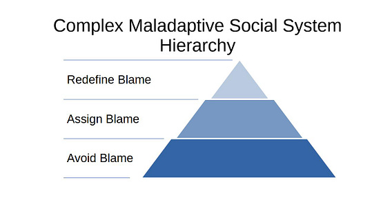Complex Maladaptive Social System (CMSS) is a play on buzzwords. Complex Adaptive Systems (CAS) is a big topic in the Complexity (VUCA) world. Complex Adaptive Social Systems (CASS) takes CAS into the social domain. Complex Maladaptive Social System is a reference to toxic work environments. If we take Argyris and Schön’s Model I Theory-in-use (TIU) and update the terms, then Complex Maladaptive Social System is the right name.