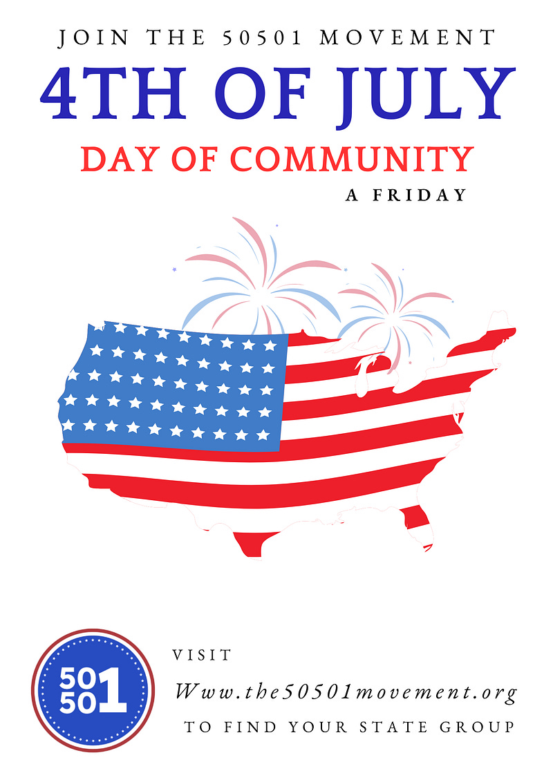 This Fourth of July, we're reclaiming patriotism by showing up for each other. Across the country, we’ll be having Community Days of Action events rooted in mutual aid, connection, and building the kind of America we all deserve. Bring your neighbors, your energy, and your heart. Then, mark your calendars: July 17th is our next nationwide protest across all 50 states. Let’s come together first to support each other, then to stand together.
