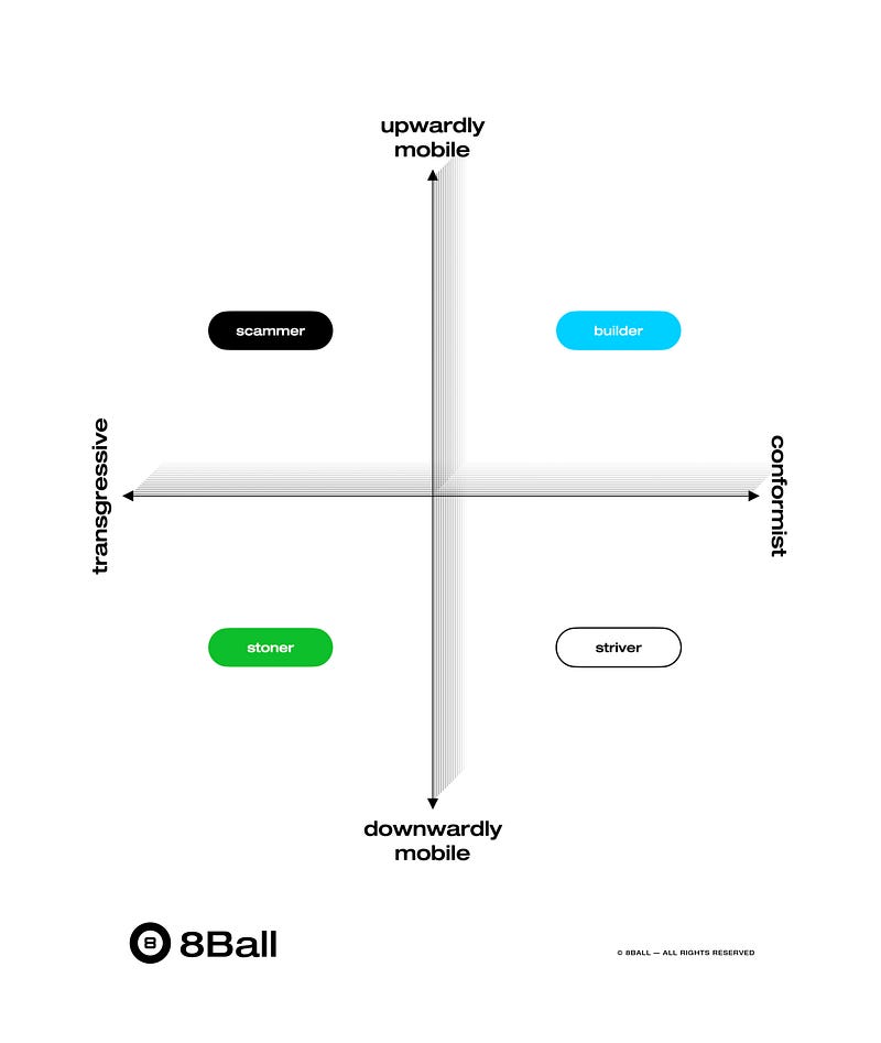 strivers, stoners, scammers, and builders