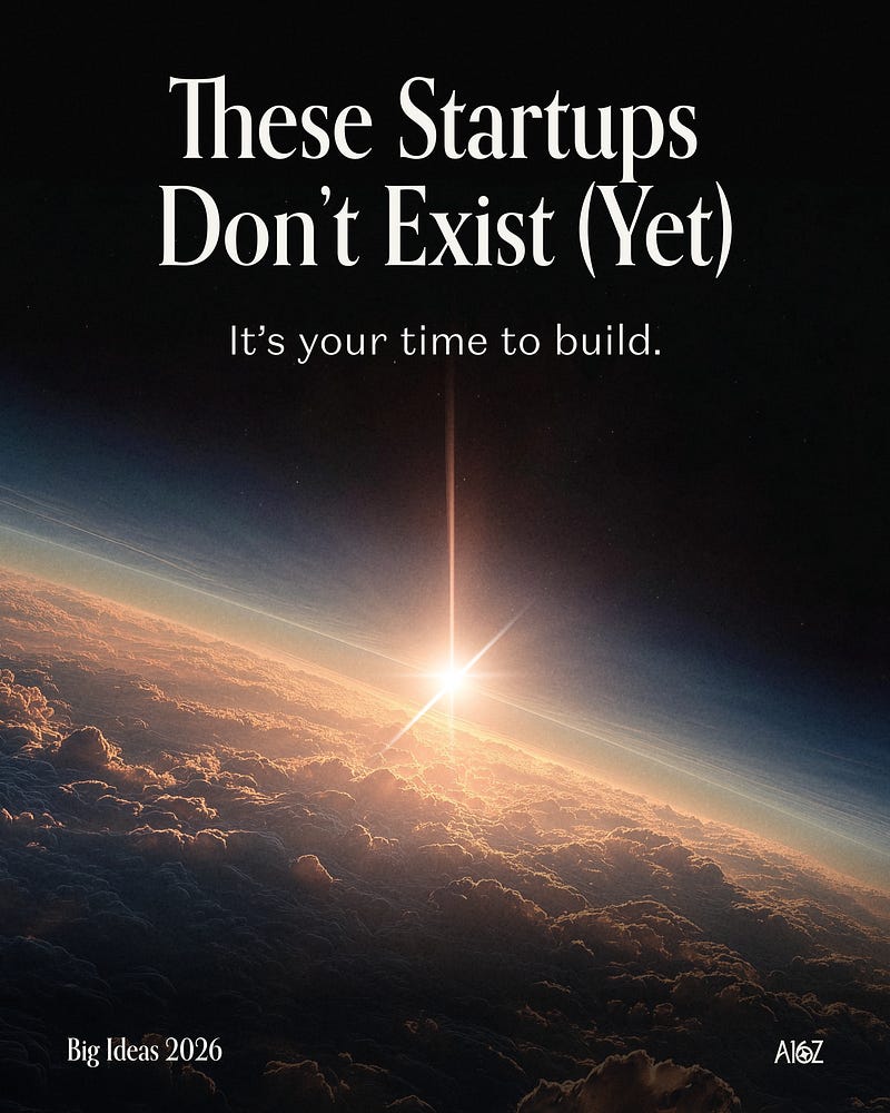 Our job as investors is to live inside the details of every corner of tech, so we can see where things are actually heading. Every December, we ask our investing teams to name one big idea they believe builders will take on in the year ahead.