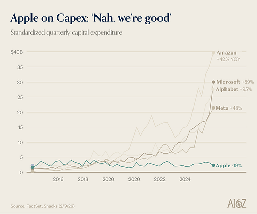 While Meta, Amazon, Microsoft and Google watch their Capex soar, only Apple reduced its Capex last quarter.