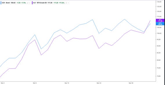 WTI soared past Brent today