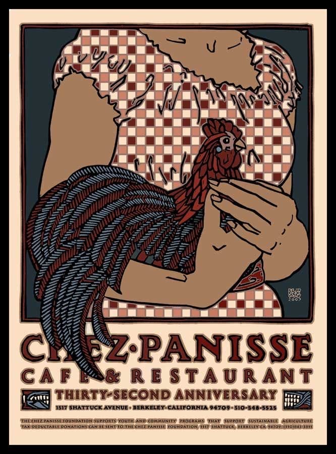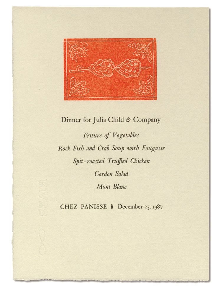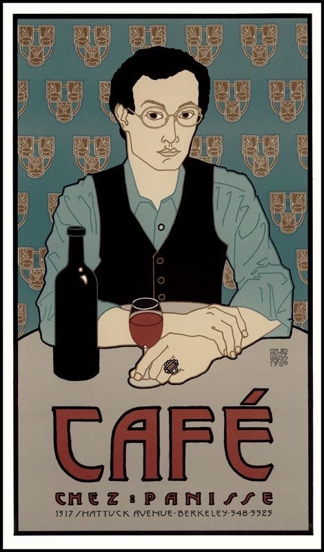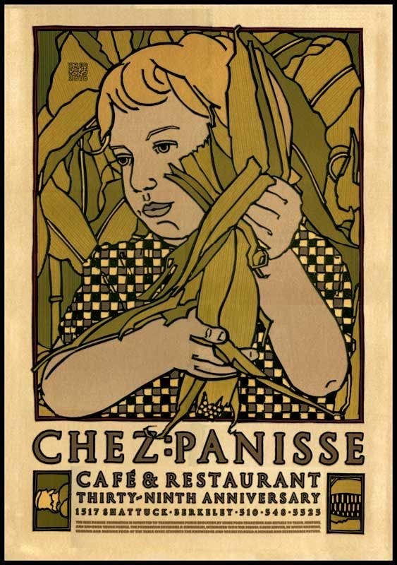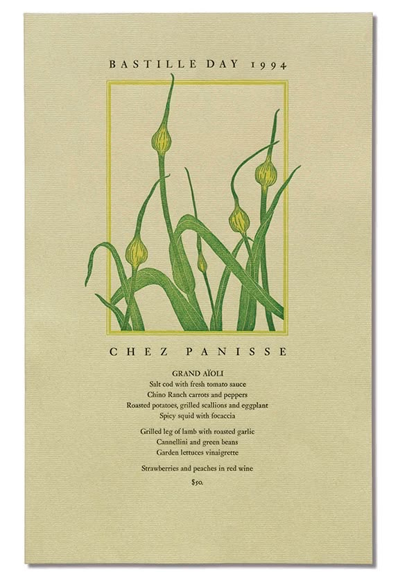 Chez Panisse’s signature look can be credited to the late David Lance Goines, a graphic artist who defined the aesthetic of Berkeley’s counterculture. His work was primarily inspired by German Art Nouveau and Japanese woodblock prints.