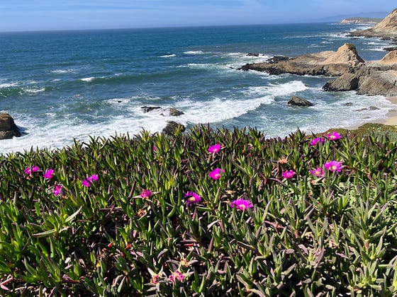 Traveling the Northern California coast, learning a bit about invasive plants. Some of them certainly are beautiful. Sea fig near Bodega Bay.