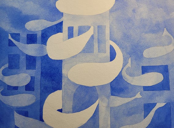 It's been a week of rainy days. And adding slow layers (turns out I love 100% cotton paper for watercolour!). Here's a painting mid-layer:
