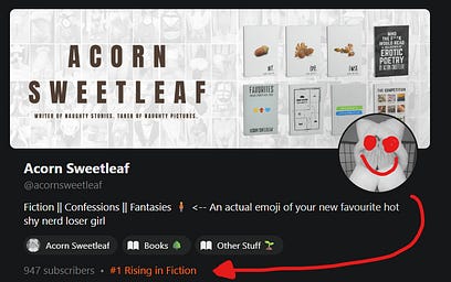 I’m so happy to be representing real actual humans in the erotica space and to be absolutely dominating my mortal enemy, AI SLOP. Thank you to everyone who follows and/or subscribes. You’re the tits.