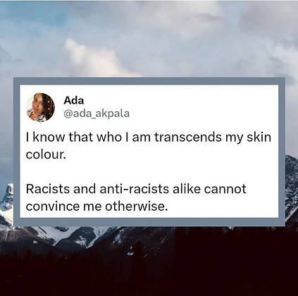 Racists think I'm inferior because of the colour of my skin. Anti-racists view me through the lens of oppression and perceive me to be inherently disadvantaged because of the colour of my skin..