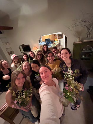 Last night I had 12 college girls over for a cozy time to chat hospitality and beauty and eat girl dinner snacks and make floral arrangements. Key takeaway: 0.5 is the new word for selfie. I’m too old. THIS is a point five: