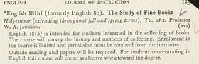 One of my upcoming essays will include a reading list that reconstructs the English curriculum of the 20th century. I found this gem while reading Harvard’s 1950-1 Catalog—”The Study of Fine Books,” a course on the art of book-collecting.