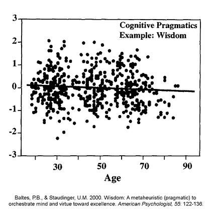 Between ages 25 and 75, the correlation between age and wisdom is zero.
