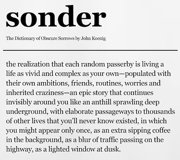 Each moment of sonder is a reminder to appreciate how little we truly grasp about others' lives.