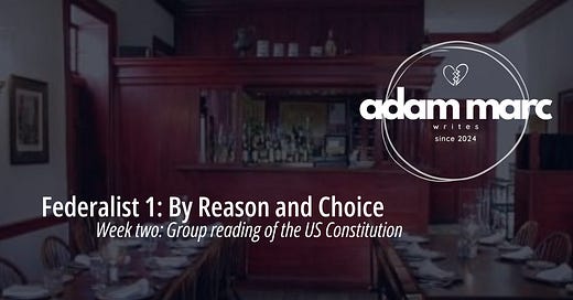 Some of us are reading the constitution and related documents. It’s a four week study, and today kicks off week two. We read Federalist 1 by Hamilton and wondered if good governance is possible by reason and choice or only by accident and force.