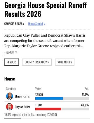 No matter what happens tonight in the reddest District in Georgia to fill the vacancy for Marjorie Taylor Greene this is a fucking disaster for Republicans in November not just in this district, but all throughout the country. There’s not gonna be many Republicans left in Congress after November.
