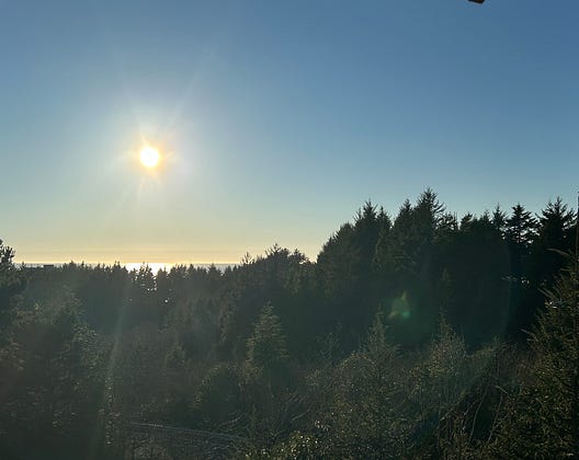 Blue skies near sunset here on the Oregon Coast. It’s 60 degrees and this is quite odd weather for us. 🌞