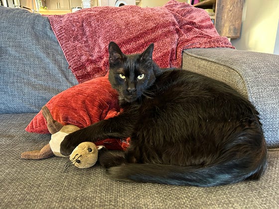 Shadow and his kill … Sealy! Happy Caturday!