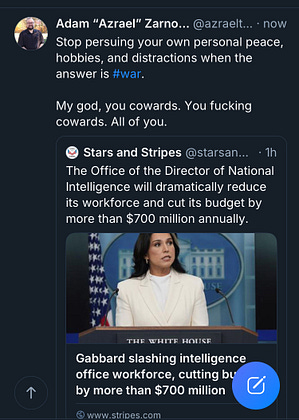 #War is here whether we like it or not. I suggest we get to the ugliness if we expect to survive.