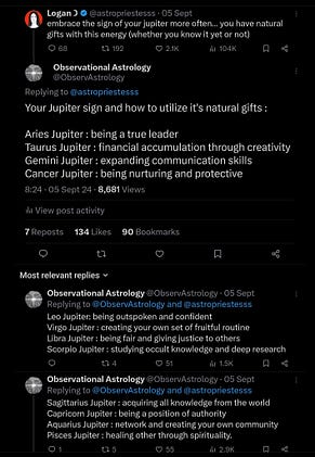 Just to show you how wild this is, I'll share my Jupiter - Jupiter/Scorpio. Find Jupiter in Scorpio on the image provided. I'm sure there are no surprises.