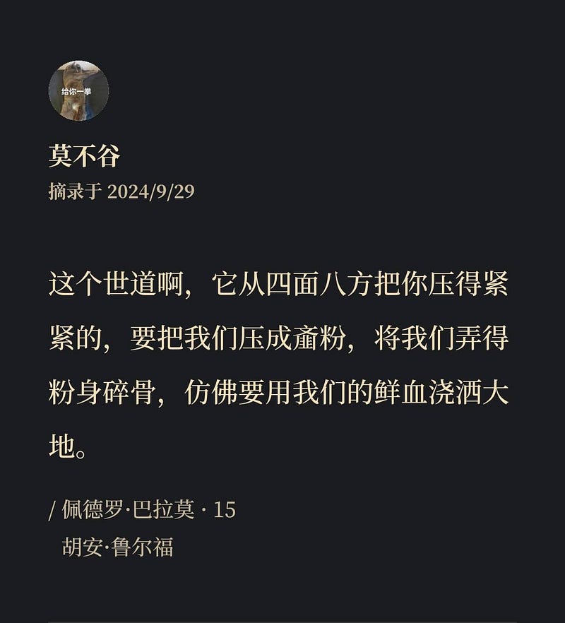 你很难想象,第一页这句话是书中一个罪大恶极,罔顾任何人伦道德,把自己的女儿逼上绝路的老恶棍说的。