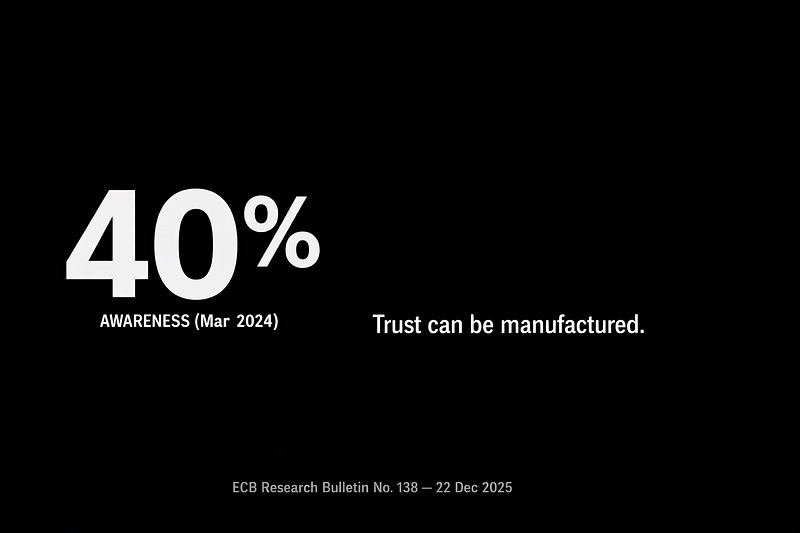 And this is why 40% awareness is not a success story. It’s a warning label: a monetary layer can be socially implemented while a large share of the public is still catching up.