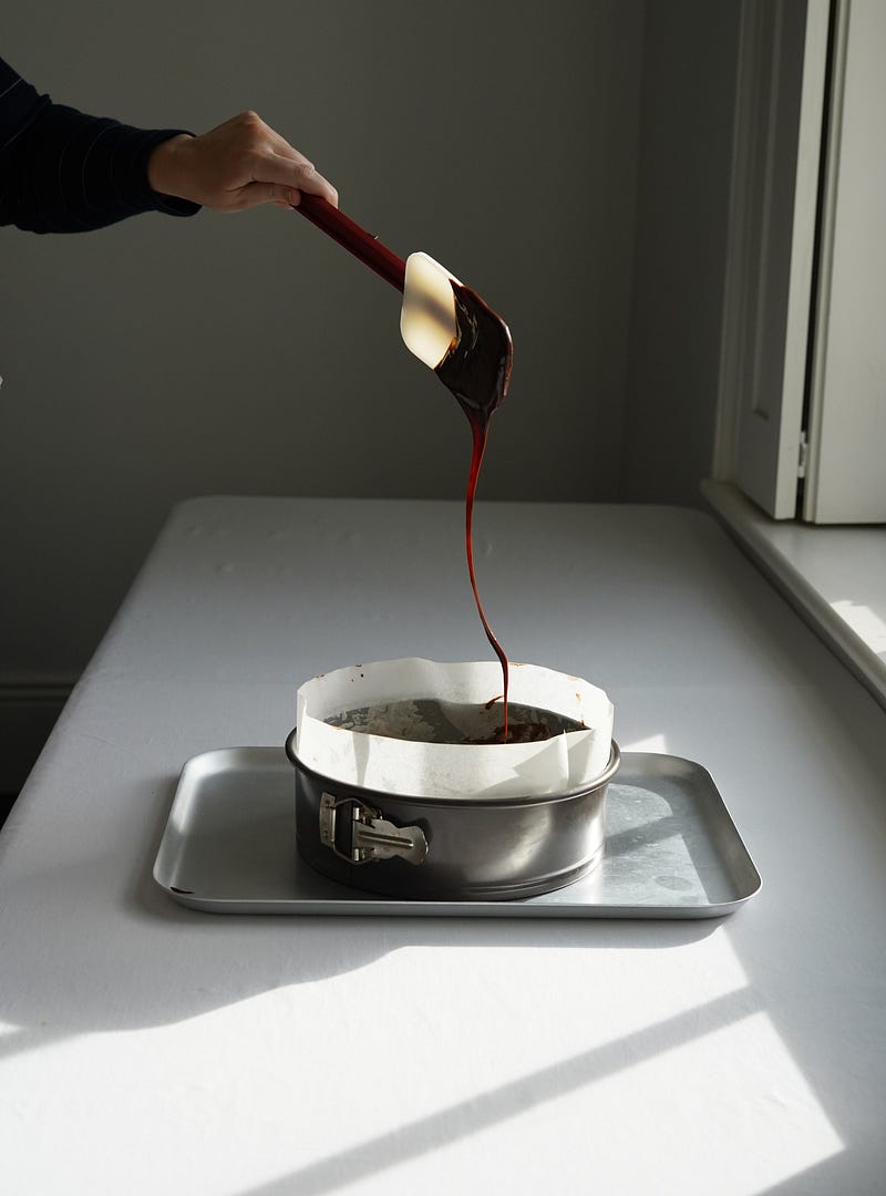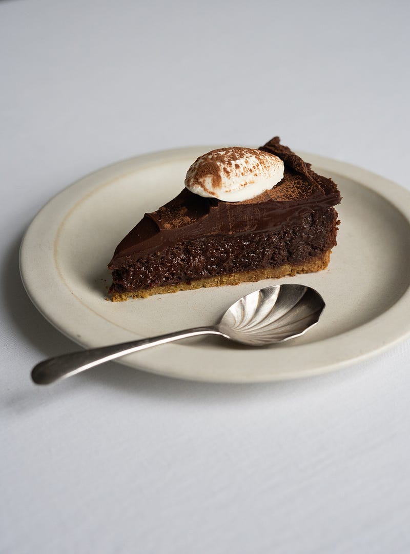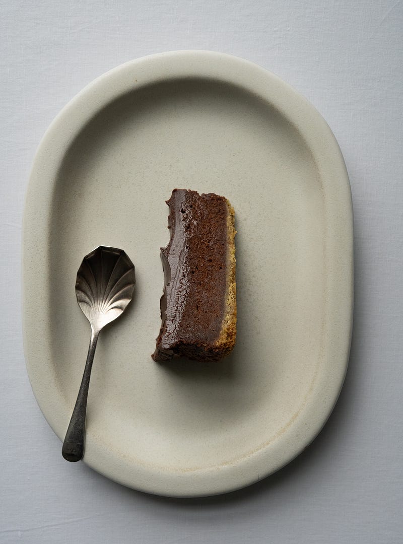 Pistachio chocolate torte with mocha ganache. A love potion in cake form.