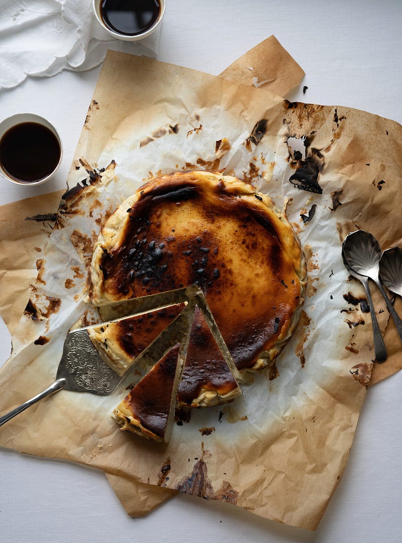 Banana basque cheesecake with banana skin caramel. A zero waste recipe, posted today (it’s free)!