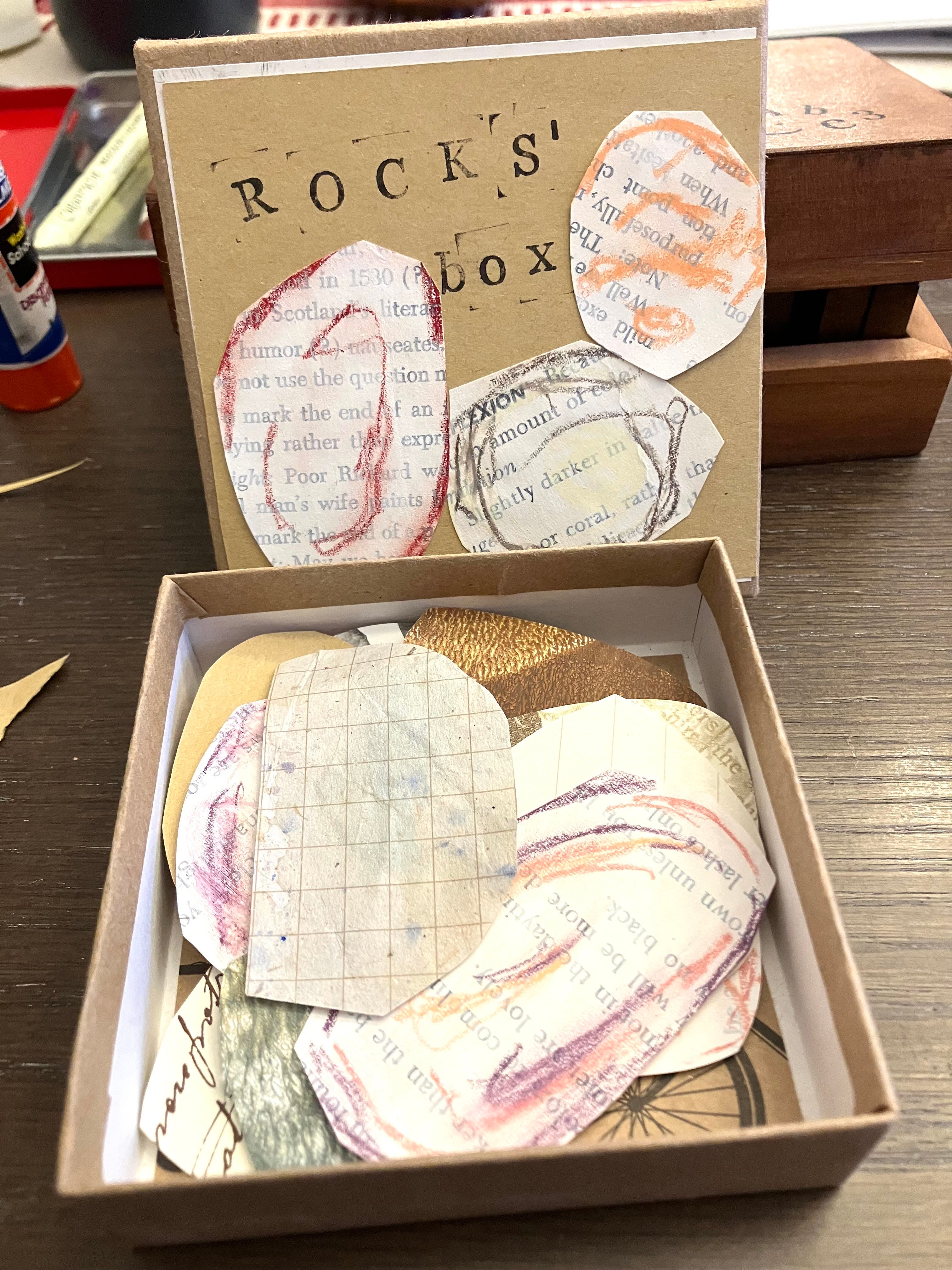 Thanks to a prompt by Estee Zales, I felt pretty excited about giving my brain a little break while I cut and colored rocks and decorated a box for my collection.