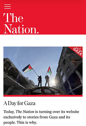 Yesterday, “The Nation” dedicated its entire website to ‘A Day for Gaza,’ amplifying voices of writers living under siege in the Strip.