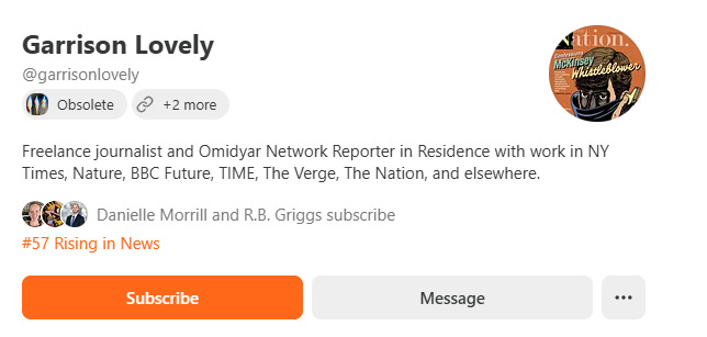 After the guest post with Garrison Lovely of Obsolete Newsletter, he is trending in the News category as a rising Newsletter.