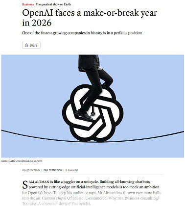 OpenAIâs demand for computing powerâby far its biggest costâhas remained tightly coupled to revenue. But revenue growth is likely to slow in 2026 as they have been over-taken by competitors in terms of momentum. Even Chinese model makers show more impressive frequency of real innovation now. What to do? More capital wonât save Sam Altmanâs empire.