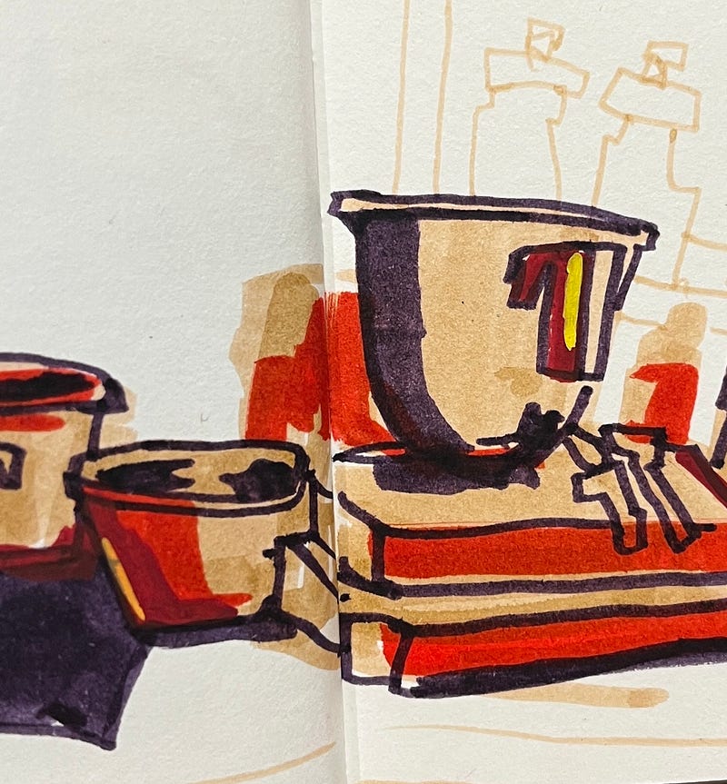 In my current sketchbook I’m trying really hard to be experimental with my colour palettes. Very different to how I normally work which is both fun and frustrating. Learning a lot.