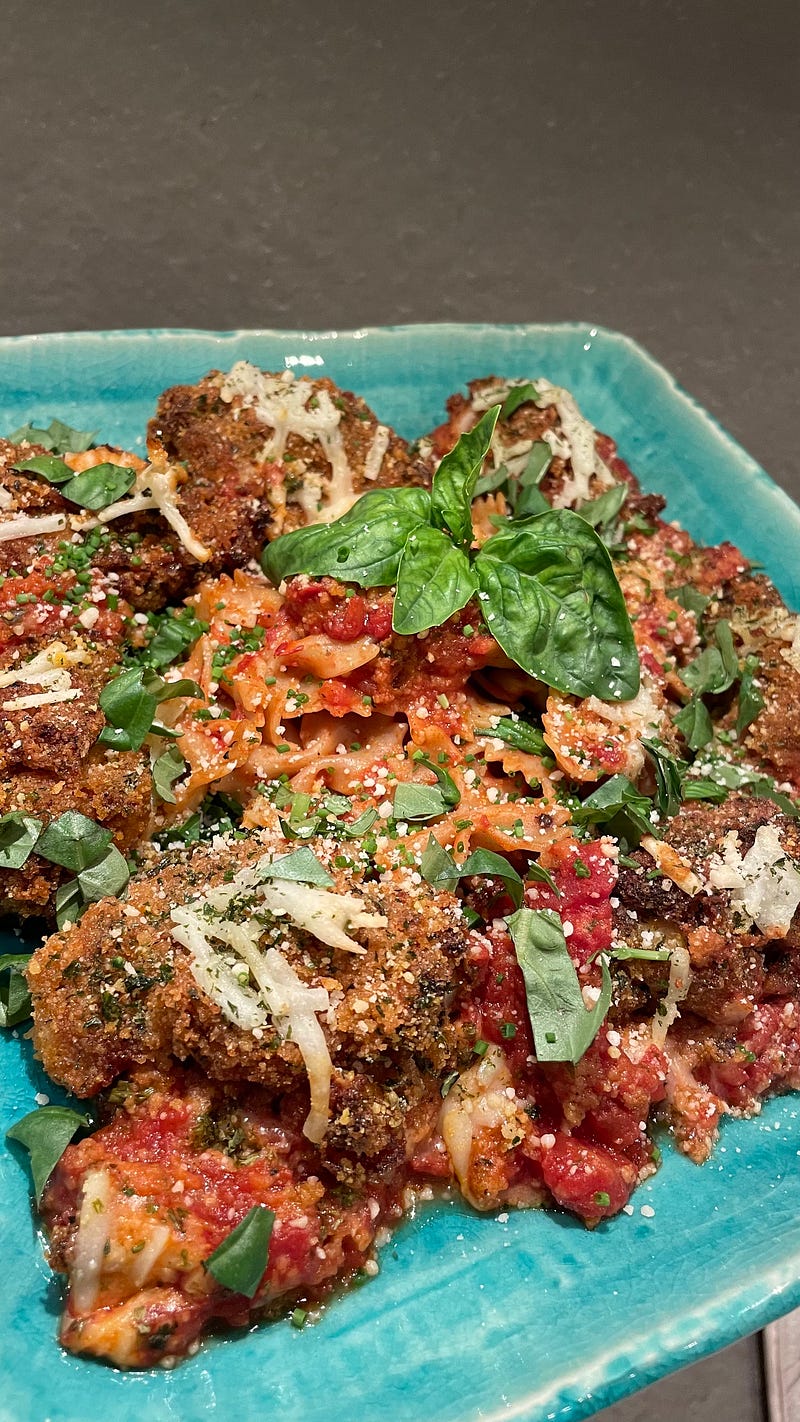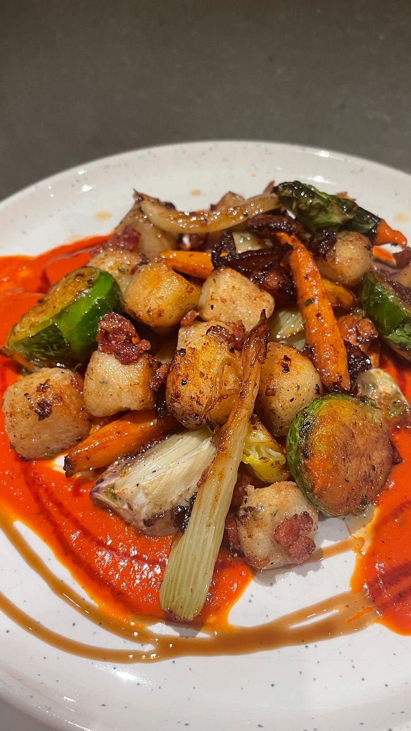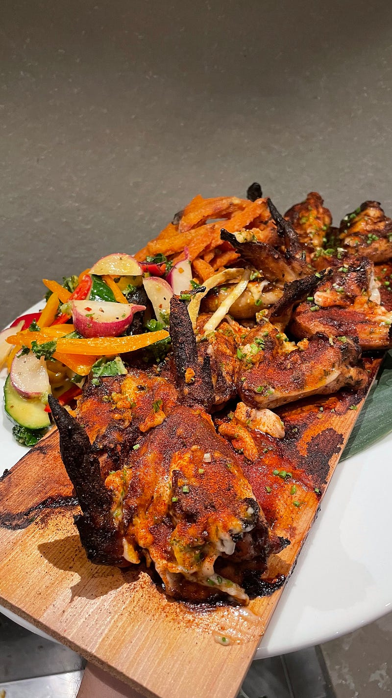 Duo of wings for dinner tonight.. Chicken parm, and Cedar plank Jerk! Also, Pan seared Gnocchi, Romesco, roasted Veg.. Gingerbread house in the works too