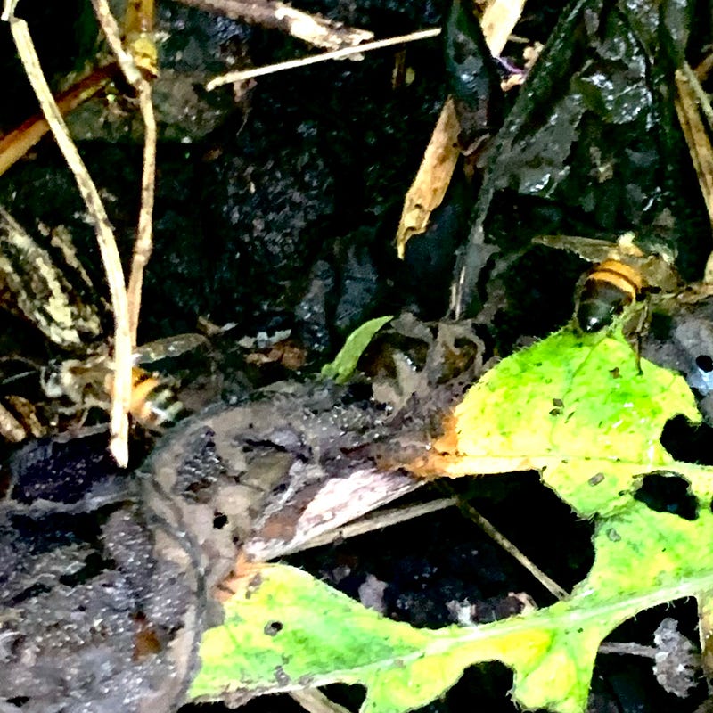 Then, as the rain slowed, I emerged from under the trees, expecting that the other bees would come out with me.