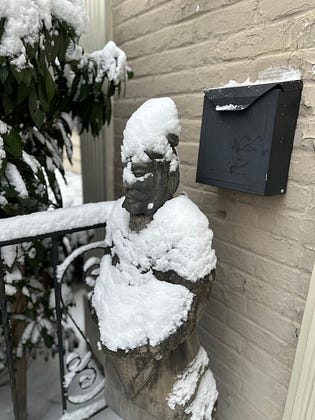 Our Xi’an Warrior will not let the snow stop him from his guard duties. Valiantly protecting the front door since 2009.