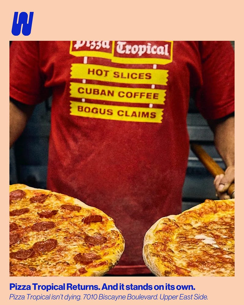 Pizza Tropical isn’t dying. 7010 Biscayne Boulevard. Upper East Side.
