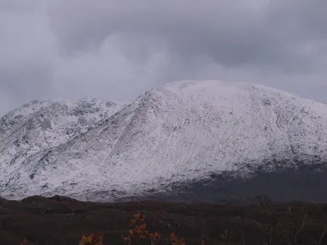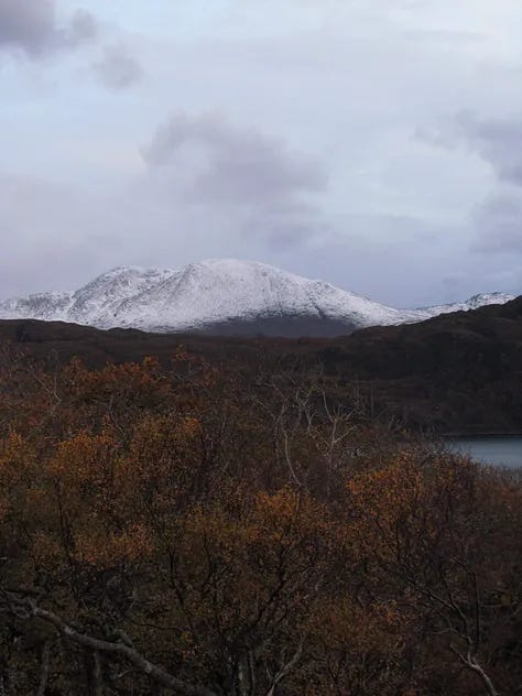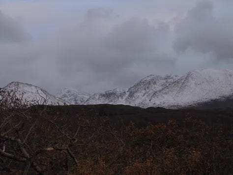 I had arisen from a night of storms to find the mountains gaining an increasingly white cap. The wind, I later discovered, had been a steady 80kph (50mph), with gusts topping 160kph (100mph). As someone who had grown up in Orkney, this was not a big, big wind—but Orkney is not wooded. The crack, the snap and the boom as branches broke and twisted, accompanied by the shift and flexing in the ground, where the matted roots were shaken and pulled, was rather exciting and, at times, frightening.
