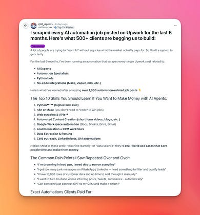 💥 Alguien scrapeo +1.000 ofertas de trabajo de IA y automatización en Upwork (últimos 6 meses).