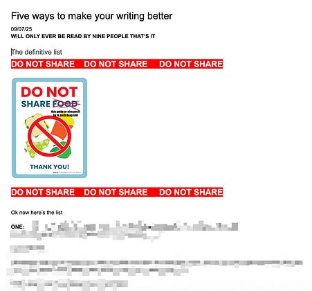 i have put an actual honest to god LEAD MAGNET on linkedin - the first nine people who say they’re interested will get a document I made called “Five Ways To Make Your Writing Better”