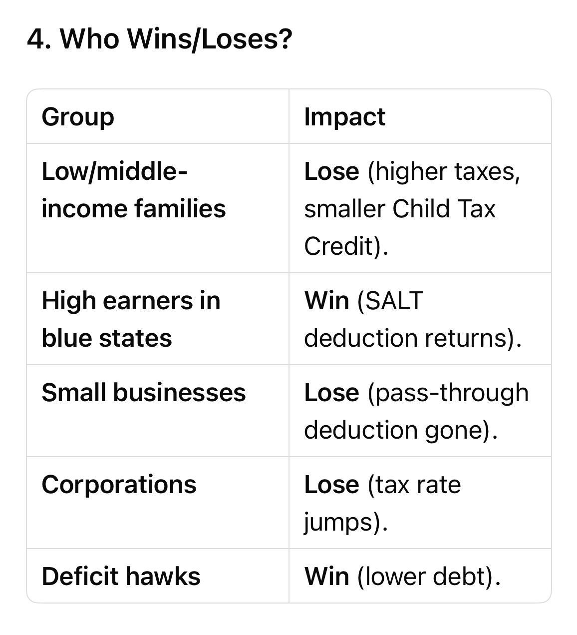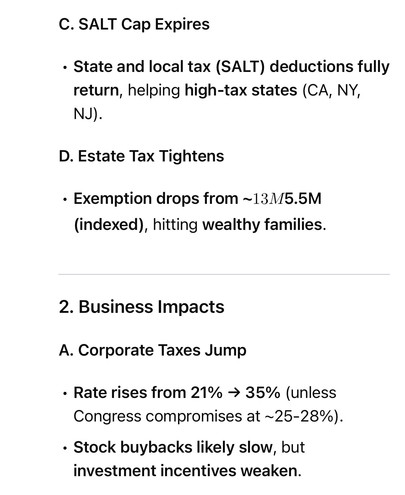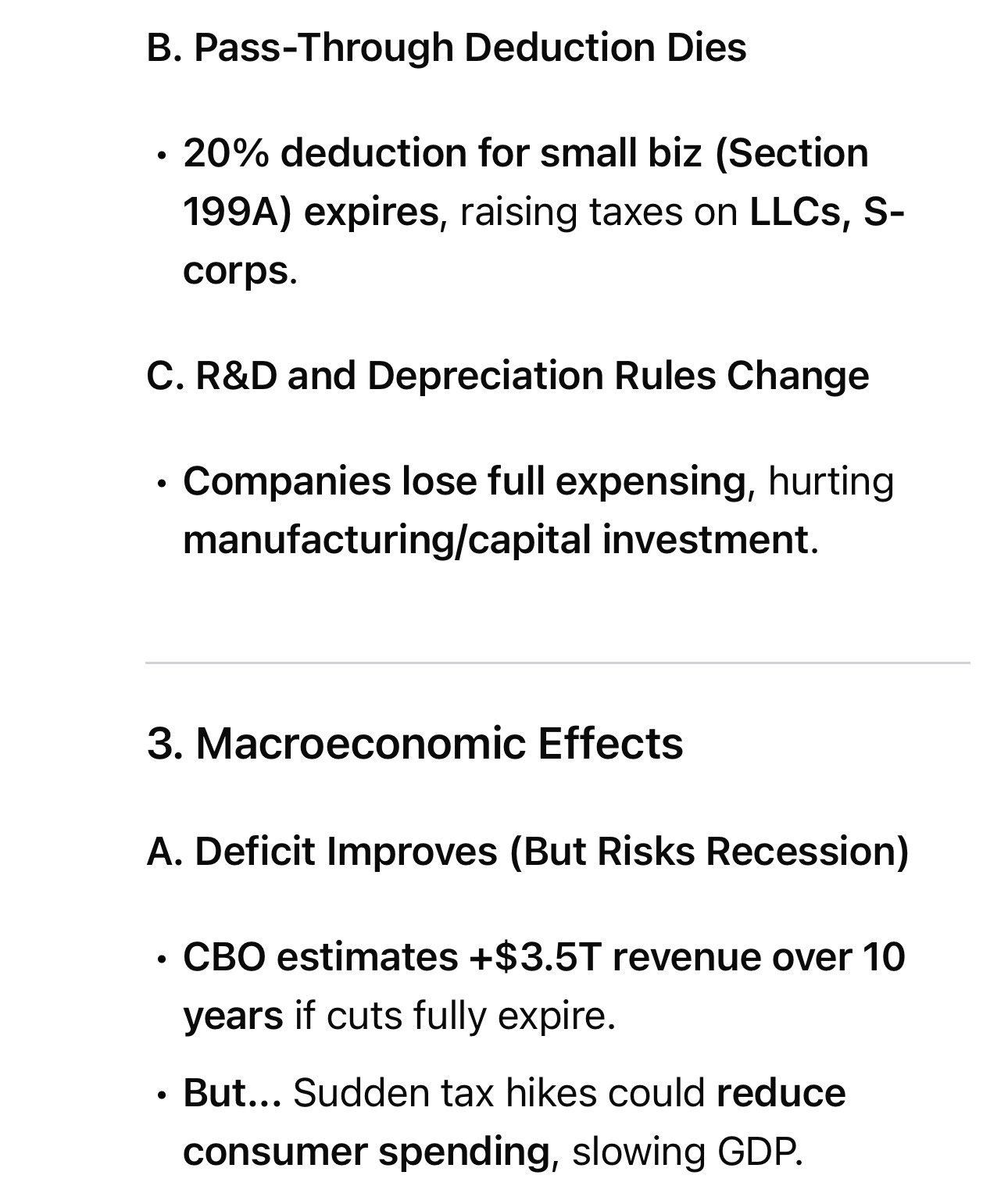 - Companies lose full expensing, hurting manufacturing/capital investment.