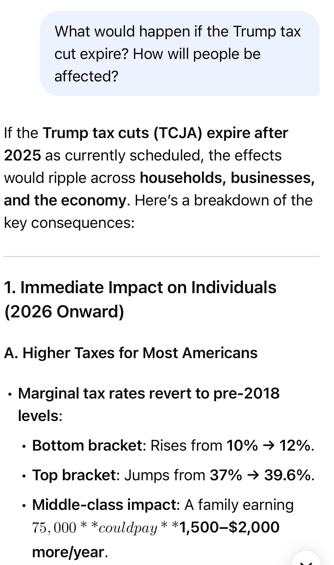 Part 3 - I asked AI: What would happen if the Trump tax cut expire? How will people be affected?