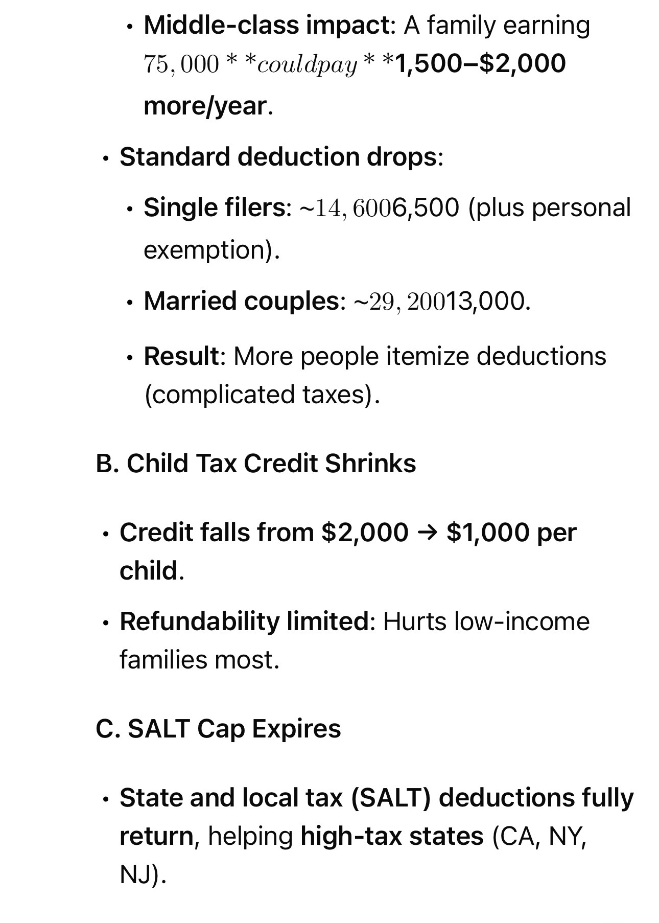 - Middle-class impact: A family earning $75,000 could pay $1,500–$2,000 more/year.