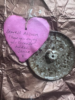 Just look at this gorgeous handmade incense holder by the talented Sarina Zoe β my beautiful prize from her Substack competition! π