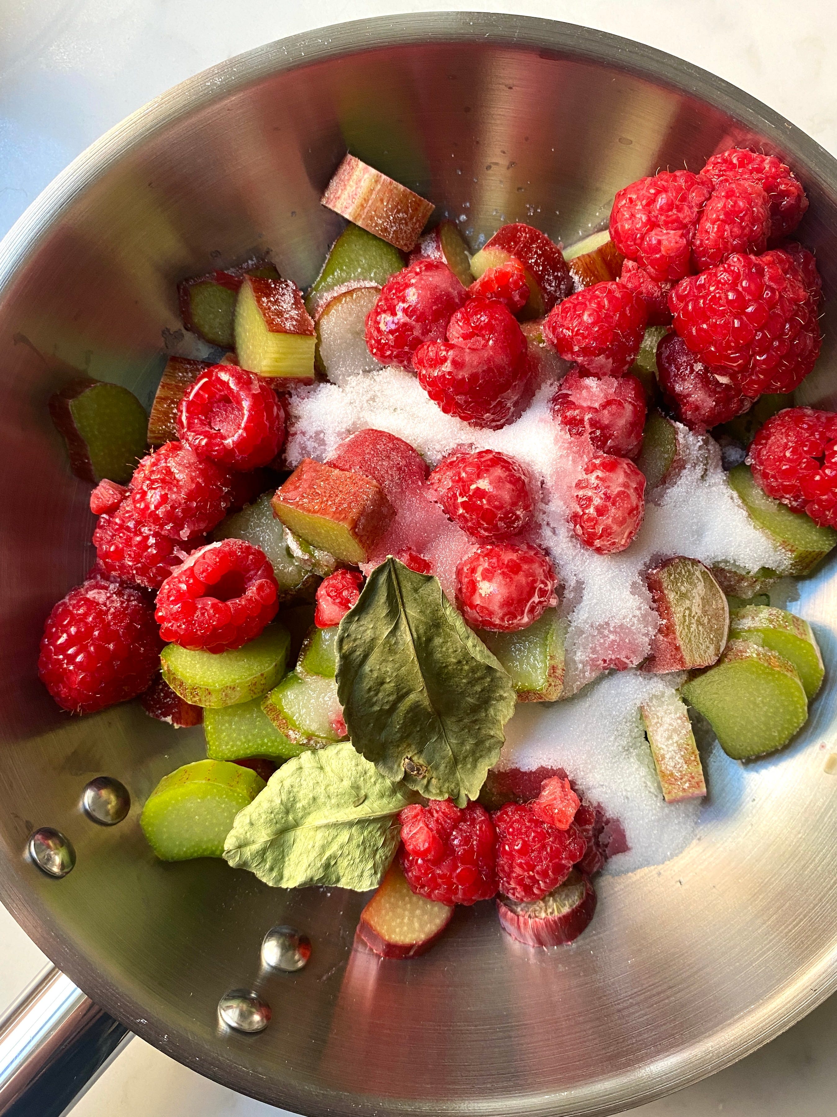 Rhubarb, raspberry & lime leaf