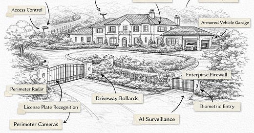 This is such a great and detailed description of what security looks like these days for the ultra-rich. And this is without even having time to get to the panic rooms that, these days, look like suites at the Ritz.