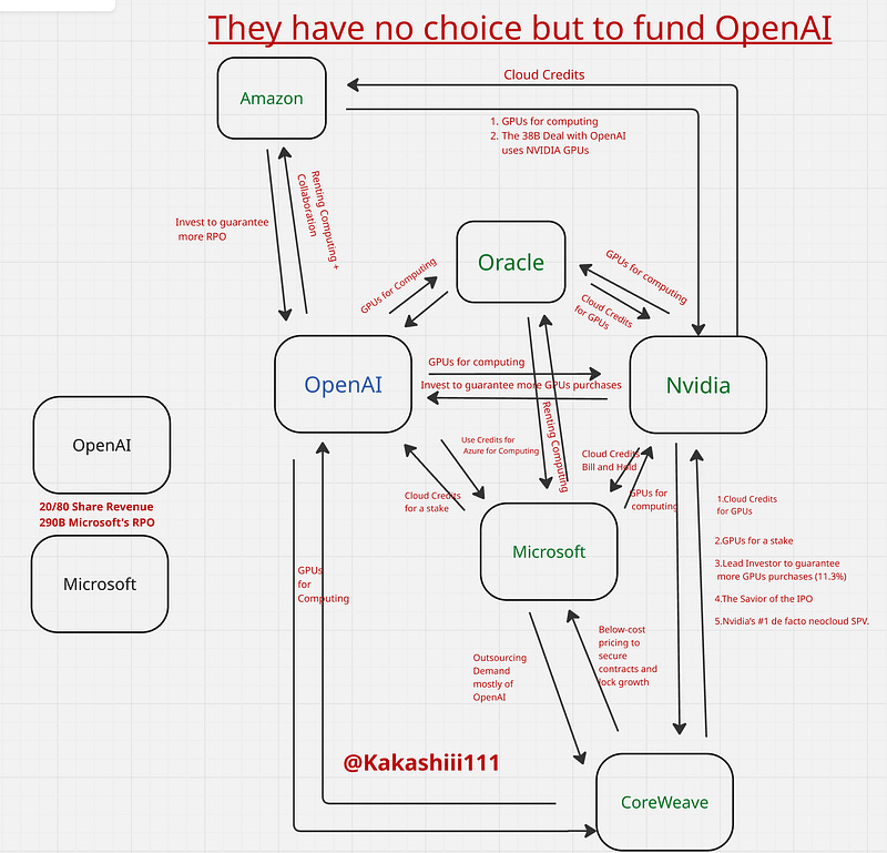 How did Sam pull it off? Well, he knew that hyperscalers need to show impressive RPO to investors to justify their capex estimates, and he knew that Nvidia needs the “Beat and Raise” cycle to keep going. So starting heavily in Q3 2025, he began throwing dozens of non-binding commitments to all these companies worth up to $1.4 trillion in total. They were all happy to take these commitments, not asking too many questions about where the money would actually come from, because it’s OpenAI. They will always get investors, right? And while it did not concern these companies at first, because they needed it, it started to concern public investors in Q4 when OpenAI did it a little too much. And now there is no going back. So what do you do? Everyone depends on OpenAI now, and they have to honor these commitments to show investors and Wall Street that these numbers are real.