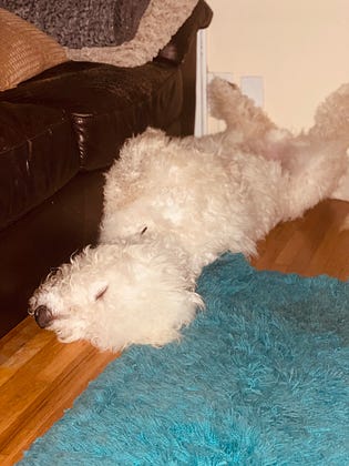 In honor of Hungary ousting Orbán, may I present my Hungarian sheepdog, Rufus, who is sleeping after celebrating a little too hard today. Way to go, Hungary 👏🏼👏🏼👏🏼