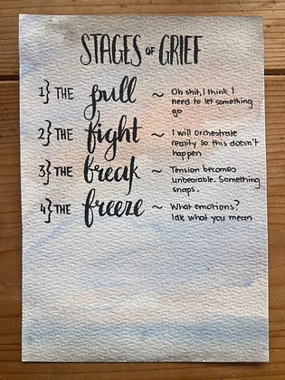 Going through a grief process, and thought I would offer an alternative model of the stages (i am extremely good at the fight stage).
